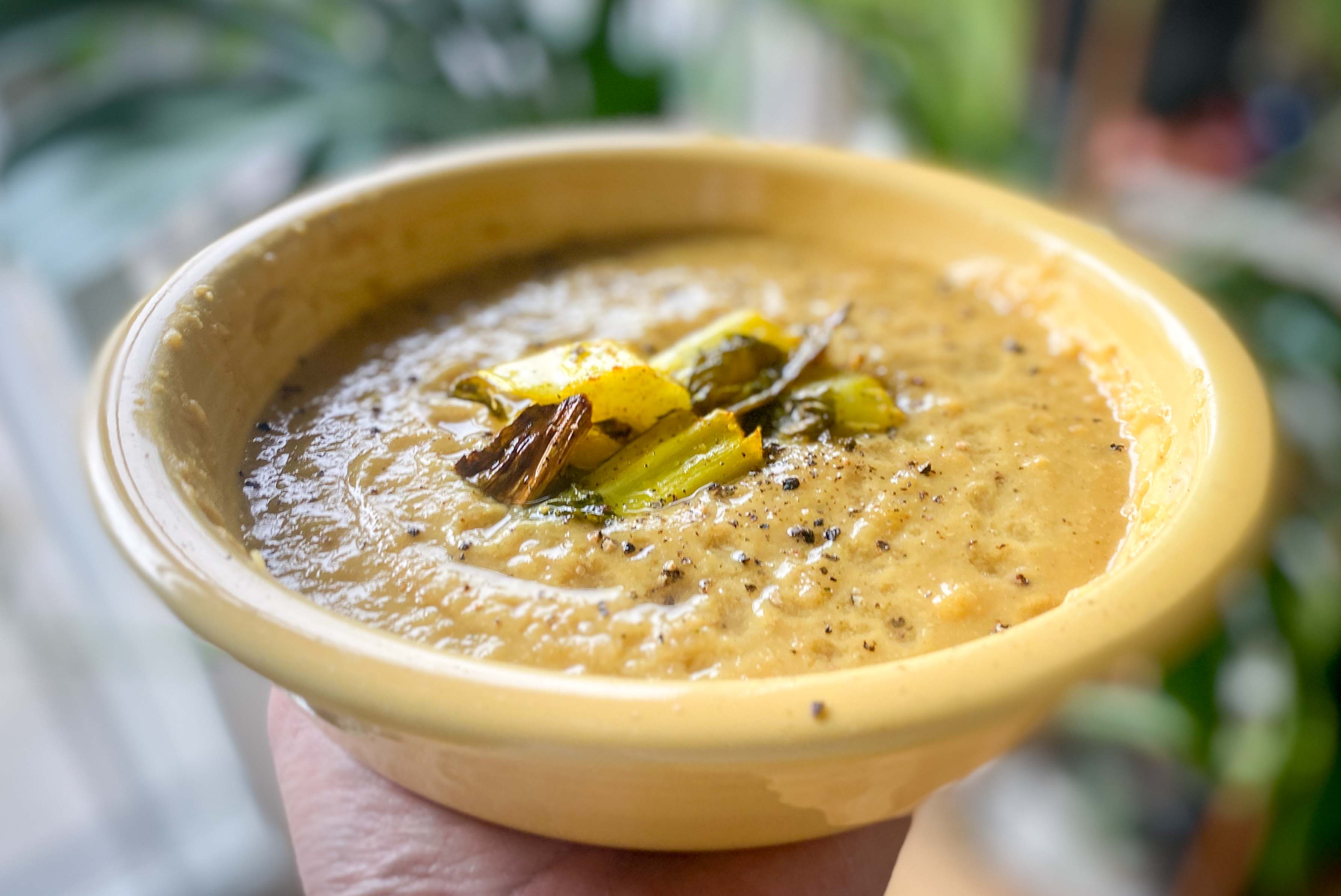 - Serve immediately and top with desired garnishes. I like lemon juice, cracked pepper, and the roasted cauliflower leaves.