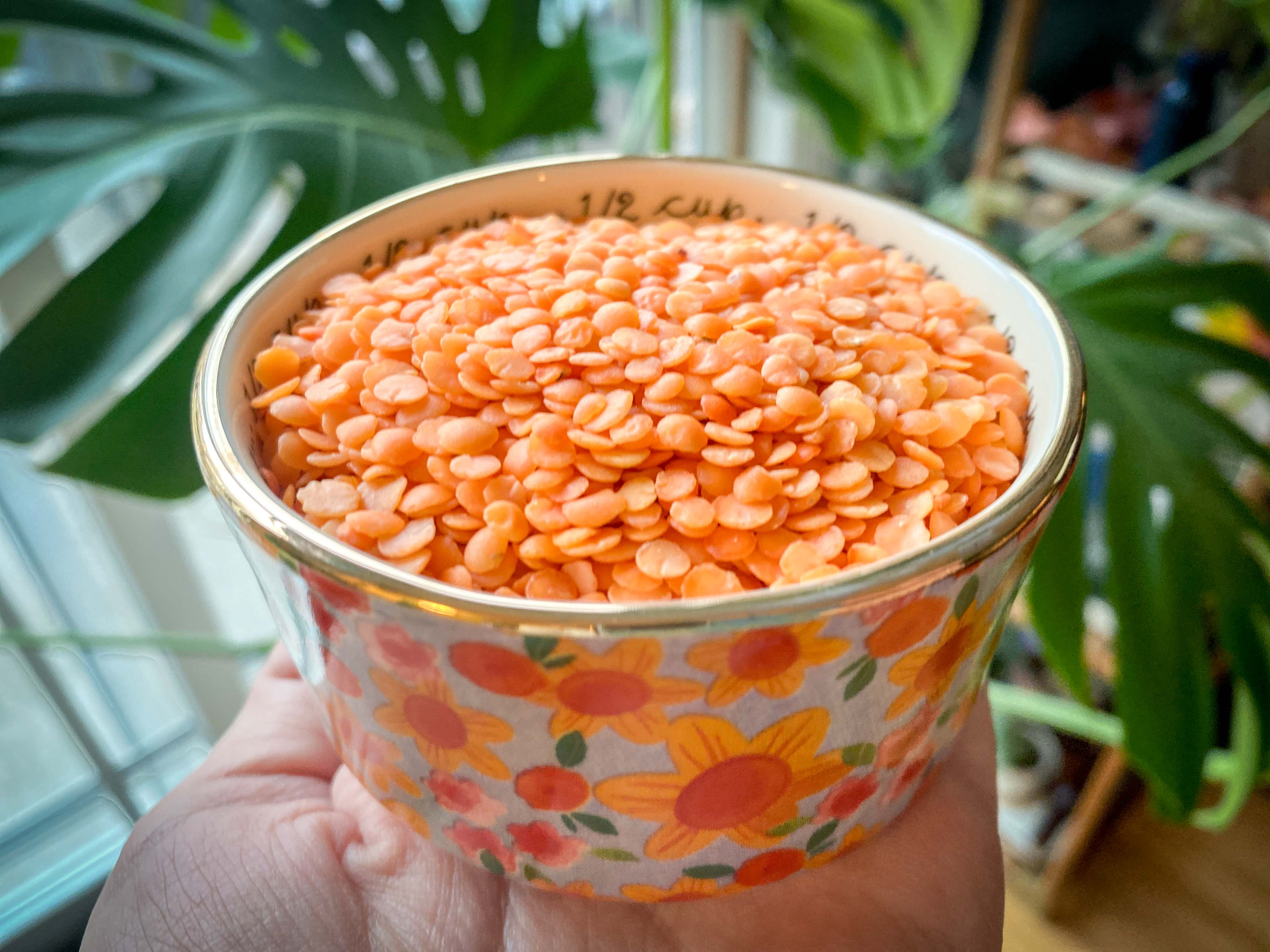 - Once roasted, put on the stove and add lentils, broth, and 2 cups of milk, and stir to combine. Bring the mixture to a boil, then cover and reduce to simmer for 20 minutes.